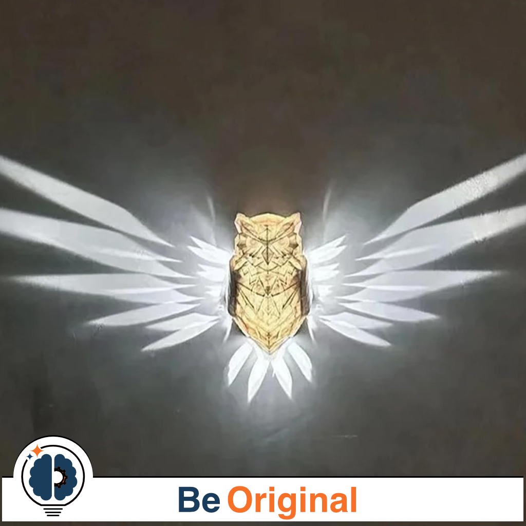 - La Nuit : C’est là que la magie opère. Une fois allumée, sa structure interne et ses découpes agissent comme un projecteur. La chouette déploie de magnifiques ailes lumineuses qui s’étalent sur votre mur, créant une ambiance douce, magique et incroyablement originale.